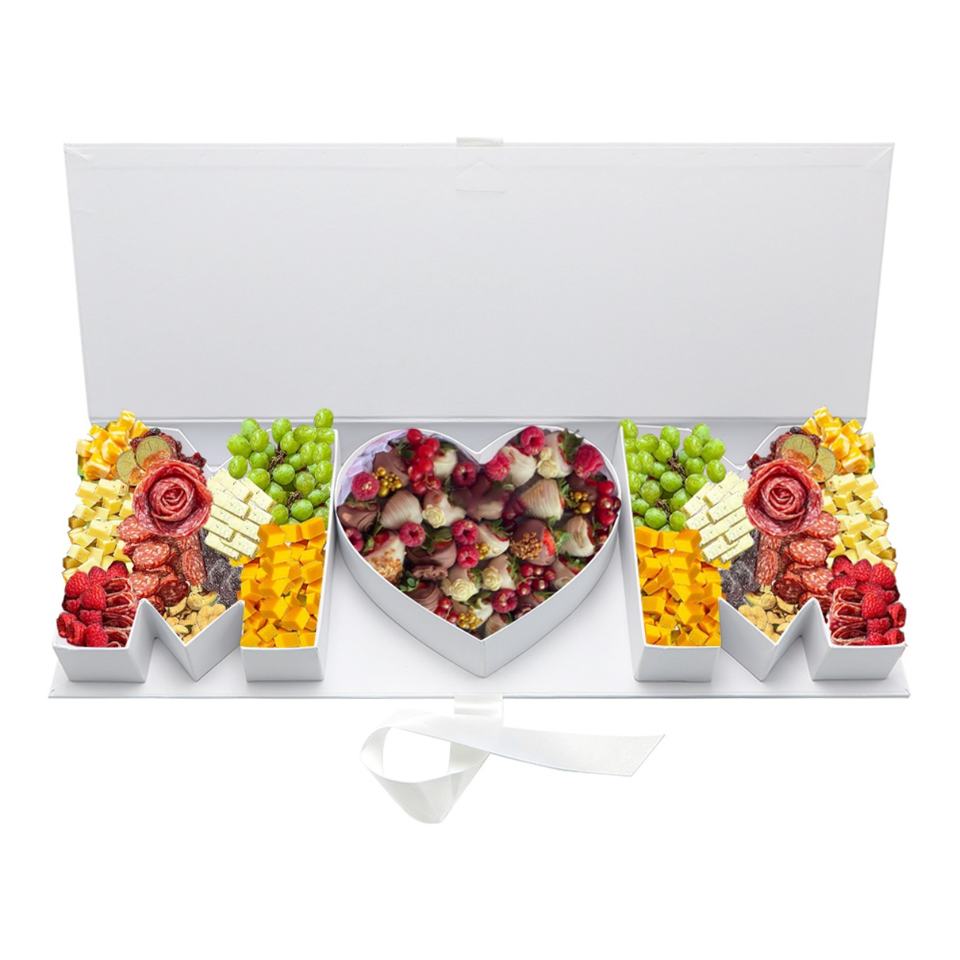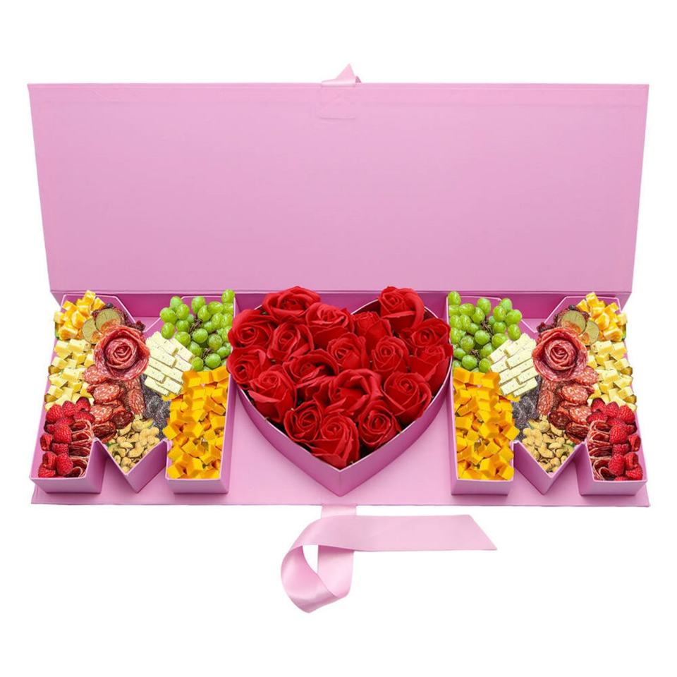 ช่อดอกไม้วันแม่ บรรจุภัณฑ์ช็อกโกแลตแสนหวาน กล่องของขวัญรูปตัวอักษร MAMA ทำจากกระดาษแข็งรูปตัว MOM