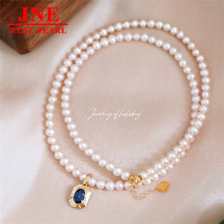 ของขวัญวันแม่ ไข่มุกน้ำจืดธรรมชาติ 7-8 เม็ด รูปไข่ แซฟไฟร์ 18K โกลเด้นฮาร์เบอร์ แซฟไฟร์เพิร์ล สำหรับผู้หญิง