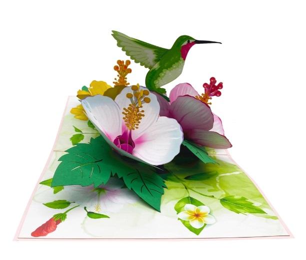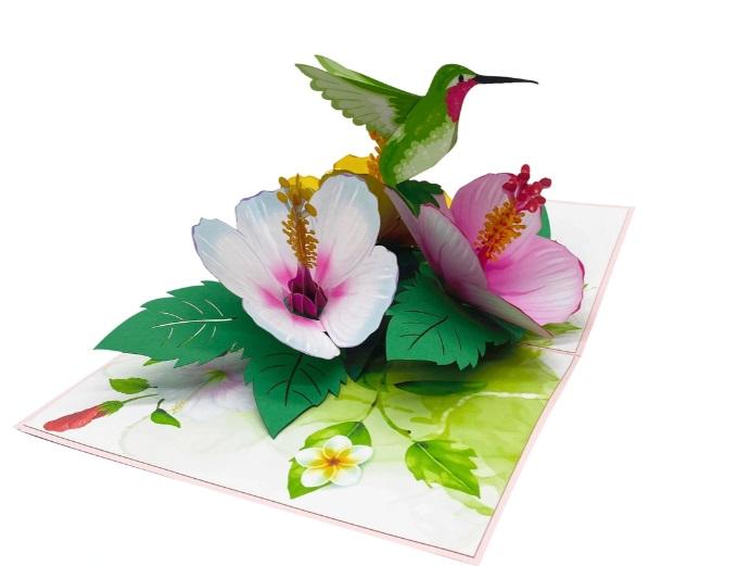Green Hummingbird & Hibicus 3D Pop Up Card