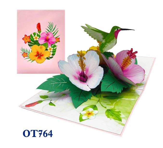Product Name:Green Hummingbird & Hibicus 3D Pop Up Card