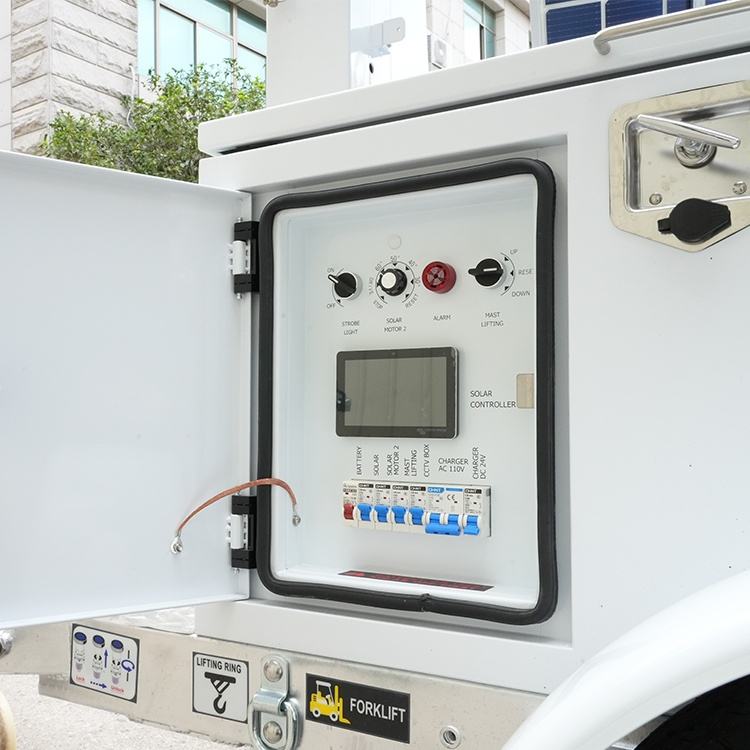 กล้องตรวจจับความเคลื่อนไหวและมองเห็นในเวลากลางคืน ติดตั้งบนรถพ่วงพลังงานแสงอาทิตย์ พร้อมตัวเลือกเครือข่ายขั้นสูง