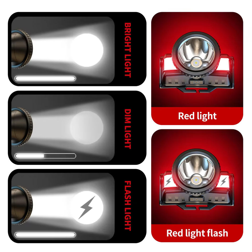 ไฟหน้าเซ็นเซอร์เคลื่อนไหว Type-C USB ไฟเตือนสีขาวสีแดง LED 5โหมดไฟหน้า800mAh พลาสติกสำหรับการปั่นจักรยานการตั้งแคมป์กลางแจ้ง