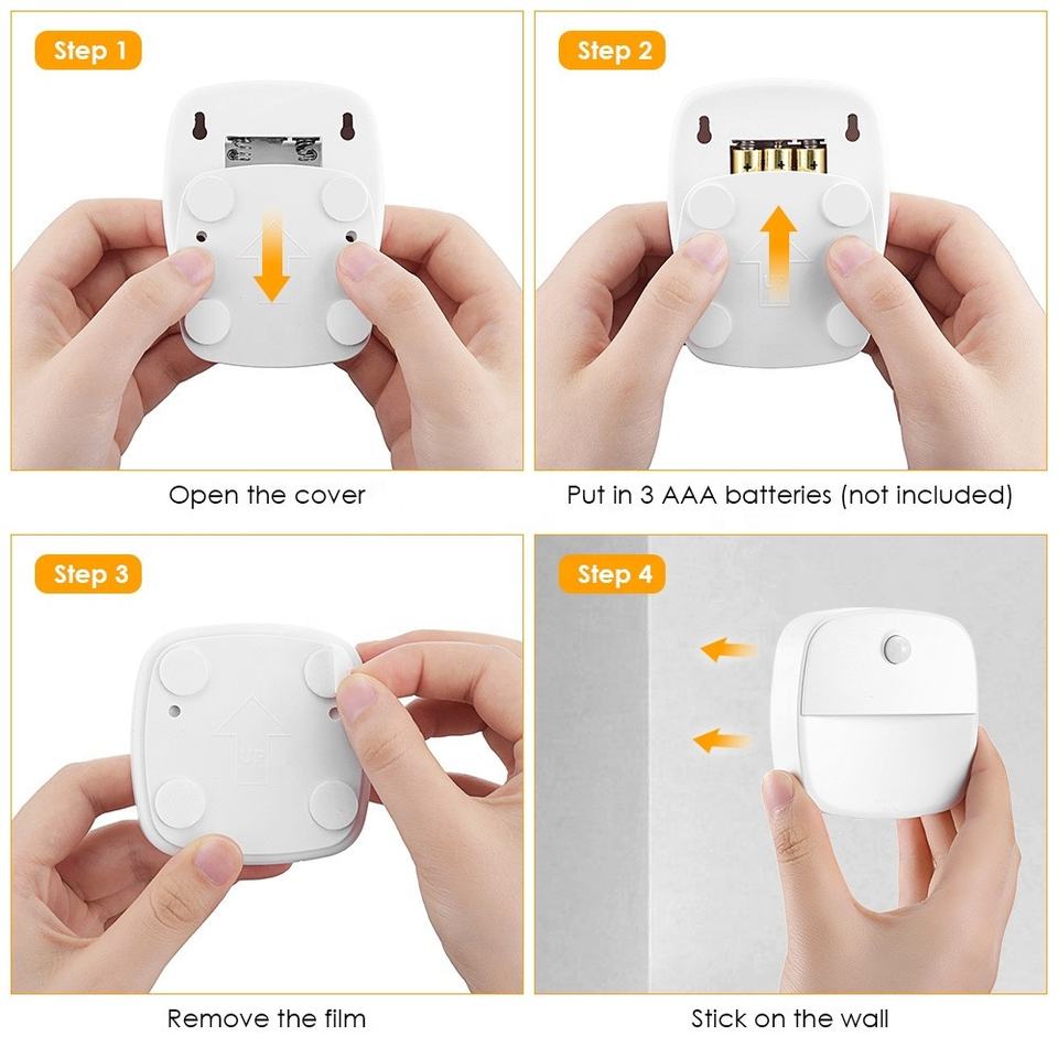 ไฟเซ็นเซอร์เคลื่อนไหวแบบ LED สำหรับติดในร่มไฟกลางคืนไฟใช้แบตเตอรี่สำหรับห้องโถงบันไดห้องน้ำตู้เสื้อผ้าห้องนอน