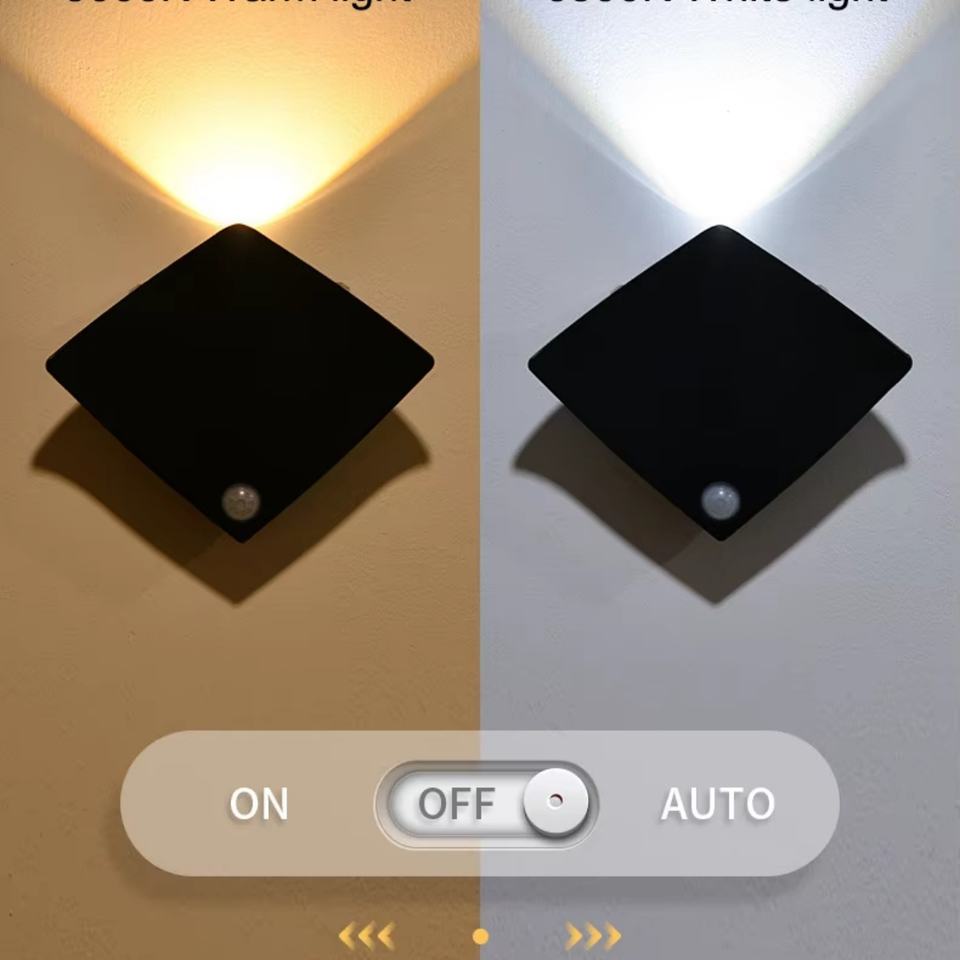 ไฟกลางคืนเซ็นเซอร์ตรวจจับความเคลื่อนไหว 60 ลูเมน LED ชาร์จ USB ได้ สำหรับติดผนังภายในอาคาร