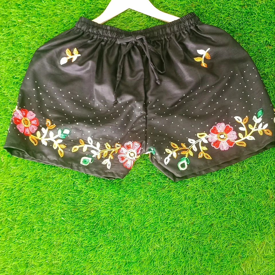 กางเกงขาสั้นเอวสูงผ้าแคนวาสพิมพ์ลายดอกไม้ผ้าเรยอนโพลีเอสเตอร์ผสมผ้า