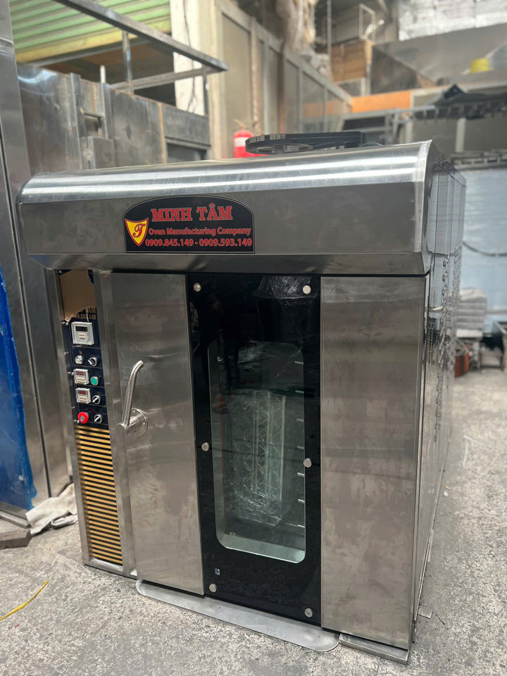 เตาอบโรตารี่ 8 ถาด รุ่น Minh Tam LX8M ไฟฟ้า 220V/380V รับประกัน 1 ปี ผลิตในเวียดนาม ป้องกันความร้อนเกินของมอเตอร์ เคลื่อนย้ายได้