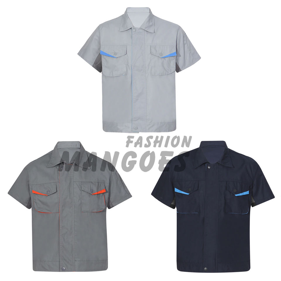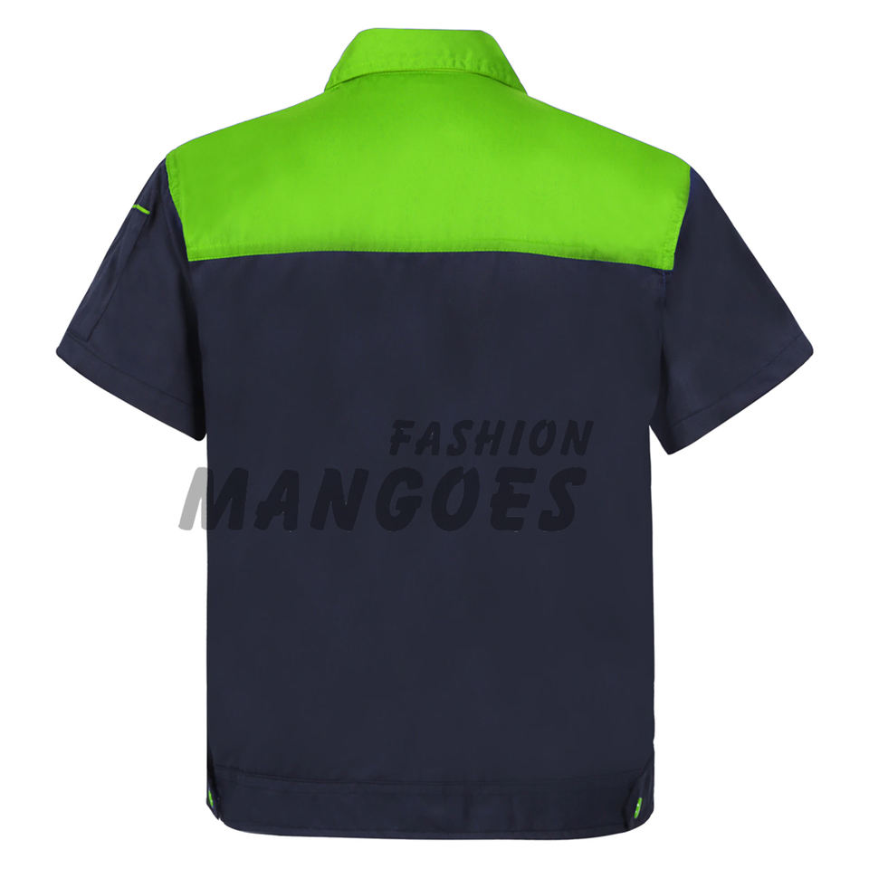 ชุดยูนิฟอร์มช่างยนต์ แบบยูนิเซ็กซ์ สีและโลโก้สั่งทำได้ ผ้าโพลีเอสเตอร์ผสมคอตตอน แขนสั้น ปกพับลง เสื้อทำงาน ยูนิฟอร์มคุณภาพสูง