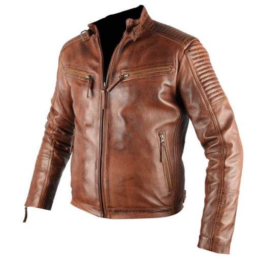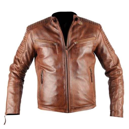 เสื้อแจ็คเก็ตหนังแท้สำหรับผู้ชาย สไตล์มอเตอร์ไซค์