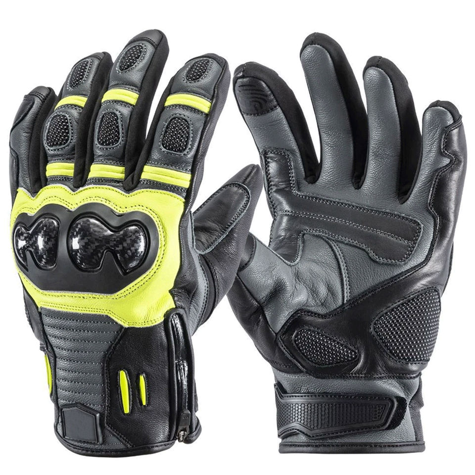 ถุงมือมอเตอร์ไซค์หนัง ถุงมือขี่มอเตอร์ไซค์แบบเต็มนิ้ว / ถุงมือมอเตอร์ไซค์แบบมืออาชีพ รองรับหน้าจอสัมผัส