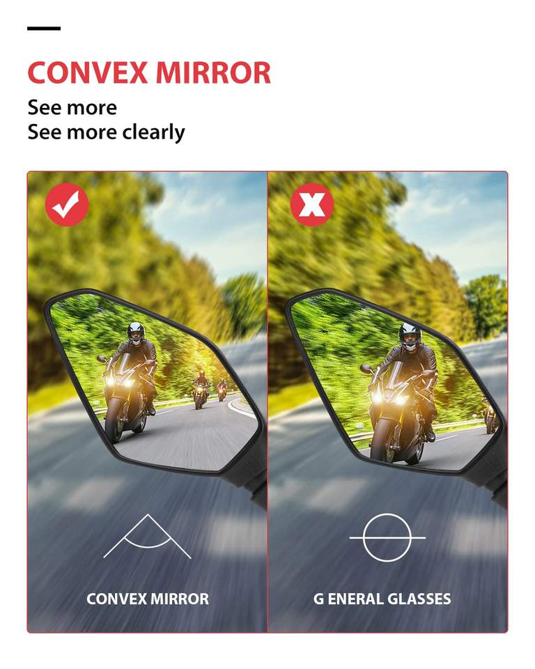 กระจกมองข้างมอเตอร์ไซค์แบบยูนิเวอร์แซล ขนาด 7/8 นิ้ว 22 มม. พร้อมสัญลักษณ์ E สำหรับติดตั้งกับแฮนด์มอเตอร์ไซค์ พร้อมน็อตเกลียว M8/M10