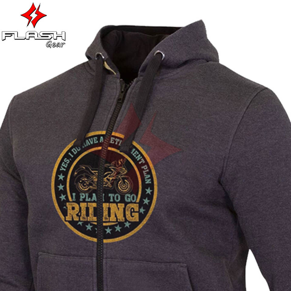 เสื้อฮู้ดดี้มอเตอร์ไซค์แบบมีเกราะป้องกัน ได้รับมาตรฐาน CE สำหรับการขับขี่ พร้อมแผ่นเสริมแรงบริเวณกันกระแทก ซับในตาข่ายระบายอากาศได้ดี
