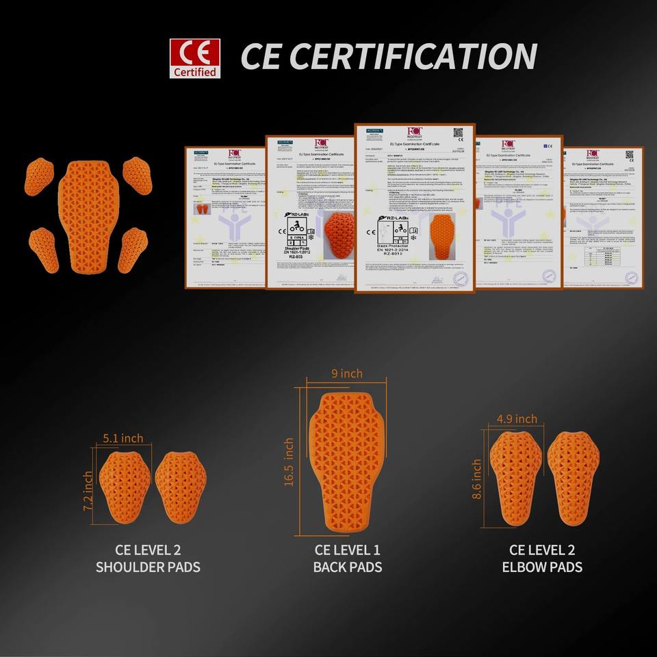 เสื้อแจ็คเก็ตมอเตอร์ไซค์เกราะป้องกันได้มาตรฐาน CE, เสื้อแจ็คเก็ตมอเตอร์ไซค์สำหรับแข่งรถมืออาชีพพร้อมแผ่นเกราะป้องกันไหล่ ข้อศอก และหลัง
