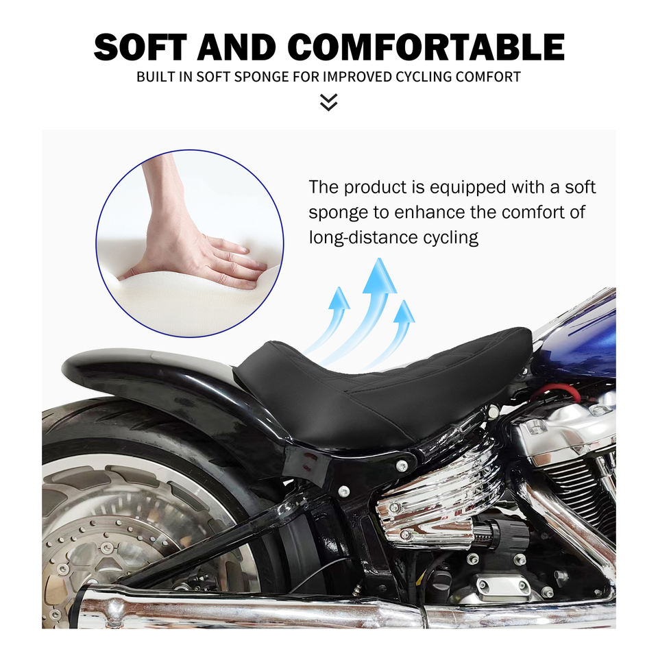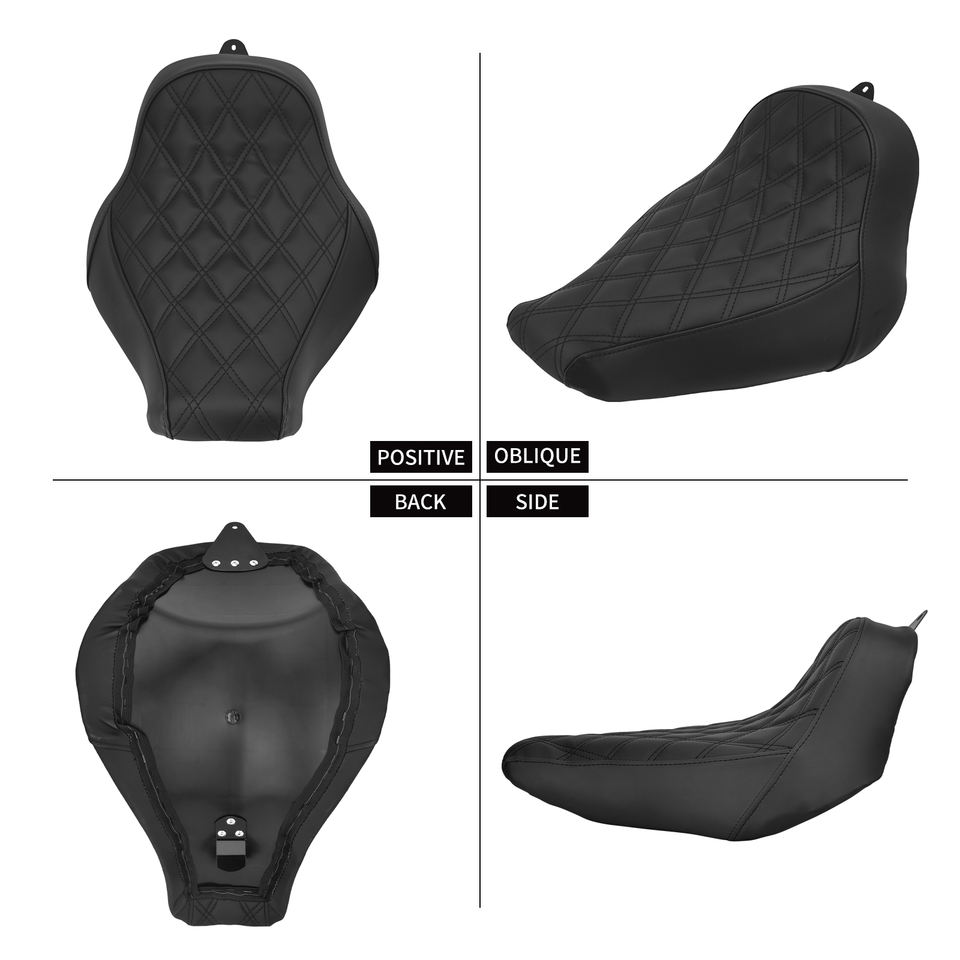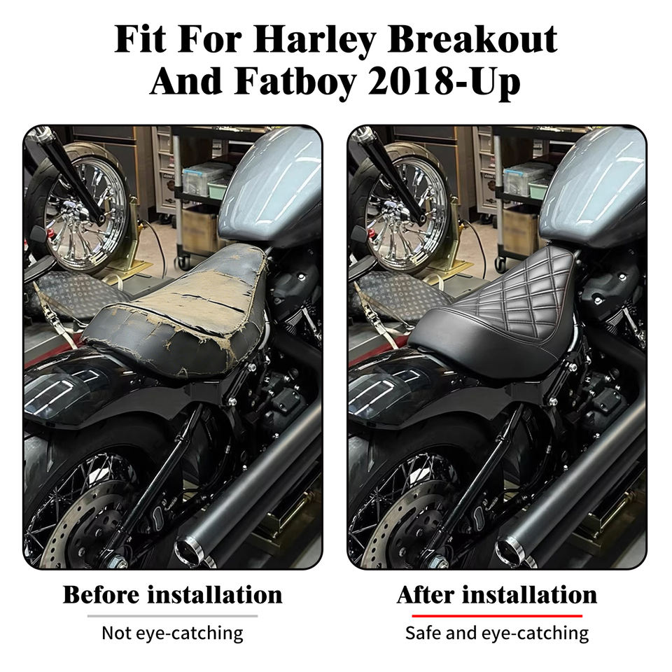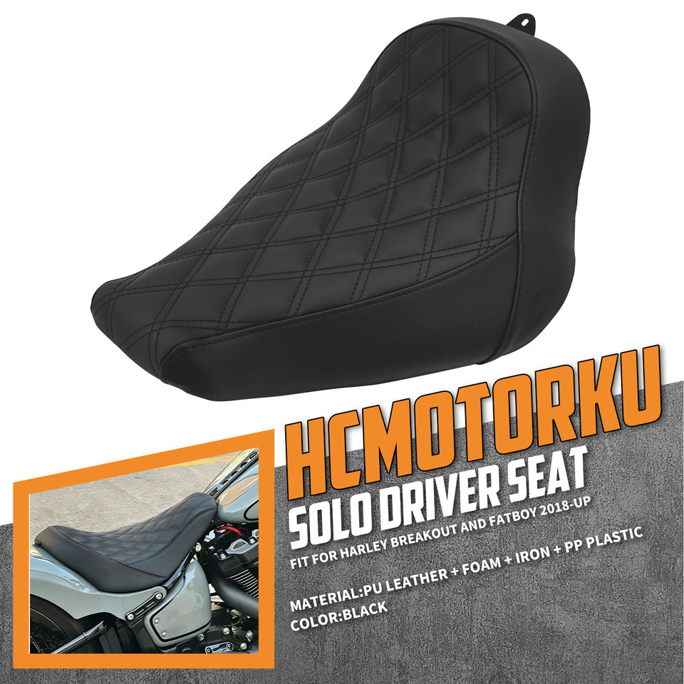 เบาะนั่งคนขับมอเตอร์ไซค์แบบเดี่ยวทรงเตี้ยสีดำลายตาข่ายสำหรับ Harley Softail Breakout Fatboy FLSTF FXBRS ปี 2018 2019 ขึ้นไป