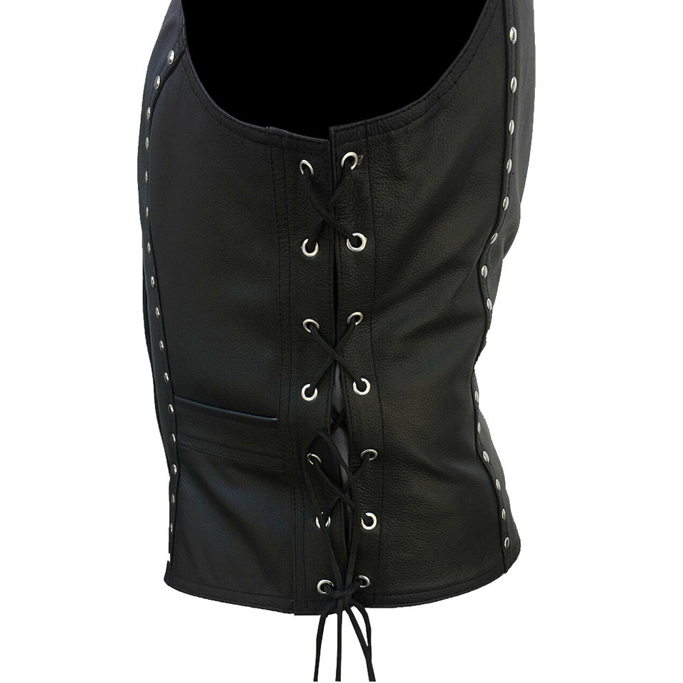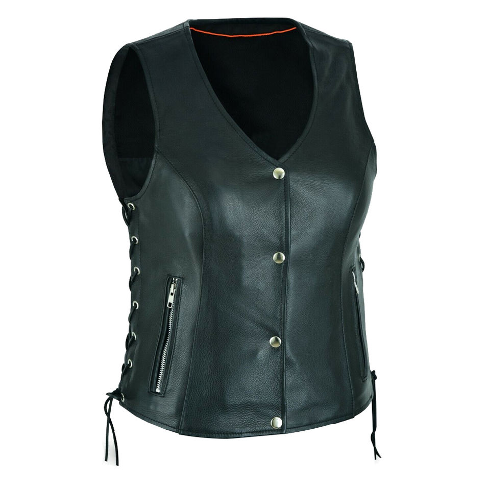 เสื้อกั๊กผู้หญิงหนังวัวแท้สำหรับใส่ขี่มอเตอร์ไซค์,คลาสสิกมีซิปสำหรับผู้หญิง