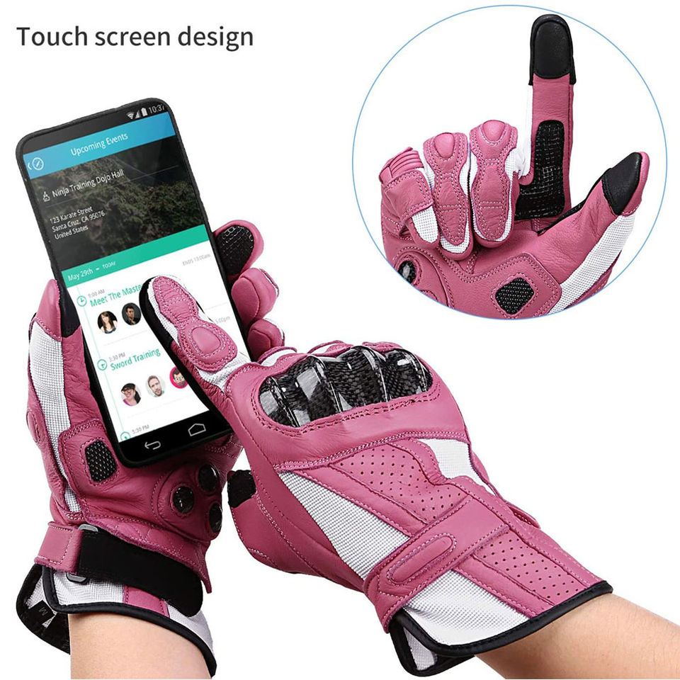 ถุงมือมอเตอร์ไซค์ หนังแท้ รองรับหน้าจอสัมผัส ป้องกันมือ ใช้งานกลางแจ้ง สวมใส่สบาย