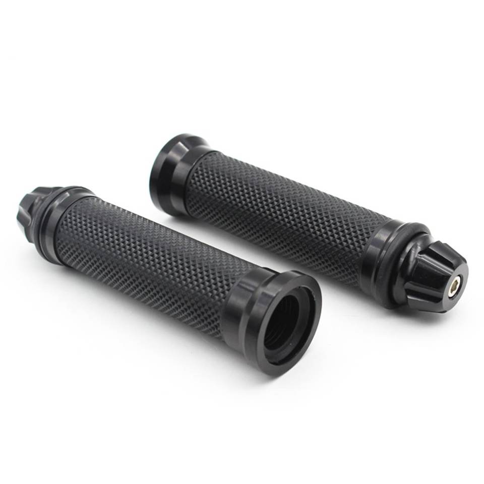 แฮนด์จับมอเตอร์ไซค์พร้อมฝาปิดปลายแฮนด์ อลูมิเนียม CNC สำหรับรถแข่ง และยางนุ่ม ใช้ได้กับแฮนด์ขนาด 7/8 นิ้ว (22 มม.) (สีดำ)
