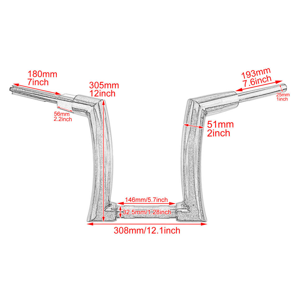 แฮนด์มอเตอร์ไซค์แบบชิ้นเดียว ขนาด 12 นิ้ว, 14 นิ้ว และ 16 นิ้ว เหมาะสำหรับการดัดแปลงแฮนด์ Harley 883 Glide
