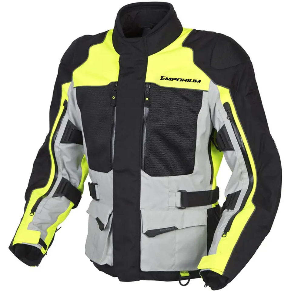 แจ็กเก็ตมอเตอร์ไซค์สำหรับผู้ชายและผู้หญิงอุปกรณ์มอเตอร์ไซค์มีแผ่นรองป้องกันระบายอากาศผ้า Cordura ช่วยเพิ่มการมองเห็นในเวลากลางคืน