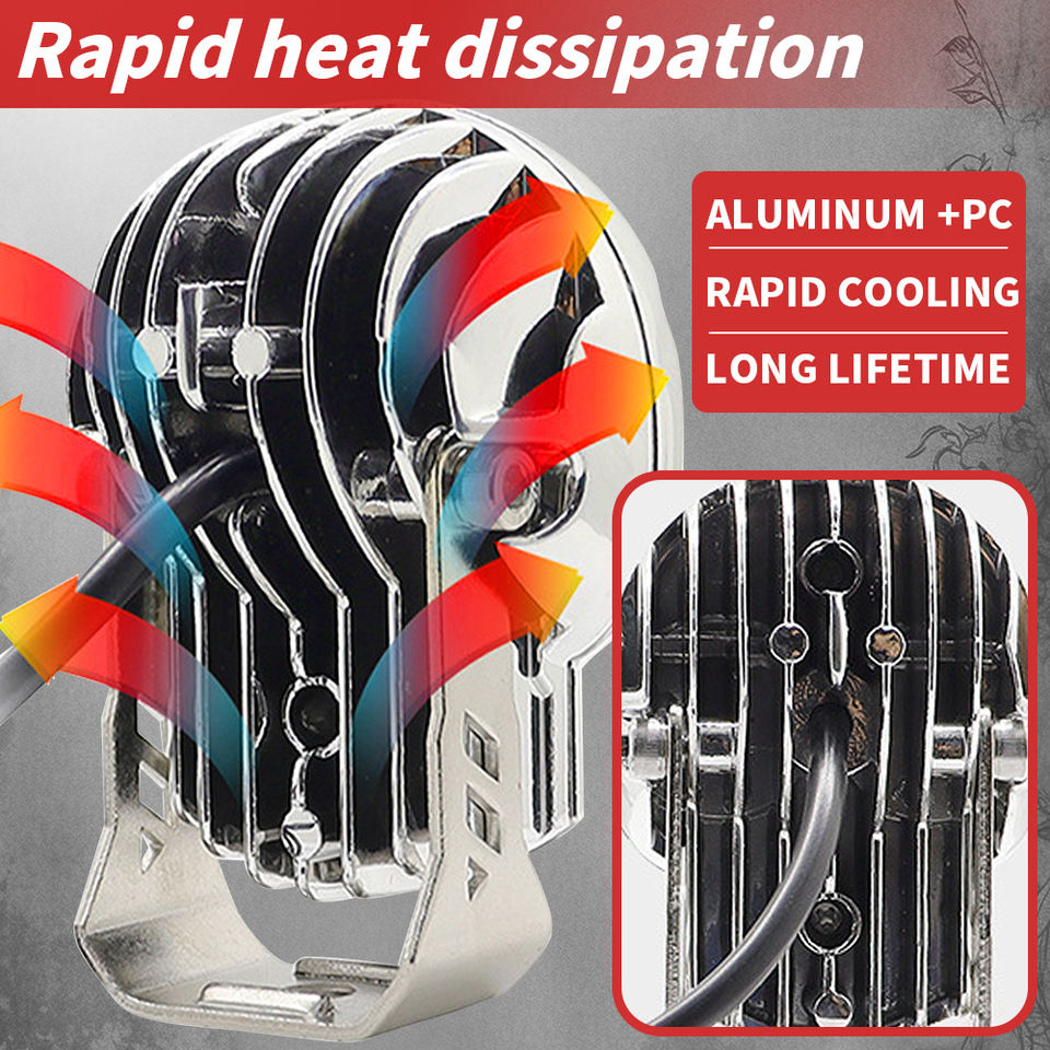ไฟหน้ามอเตอร์ไซค์ LED 3 นิ้ว รูปทรงหัวกะโหลก 40w ไฟเลนส์ LED สปอตไลท์ สีขาวเหลือง ไฟทำงานสองสี ไฟตัดหมอก ไฟขับขี่