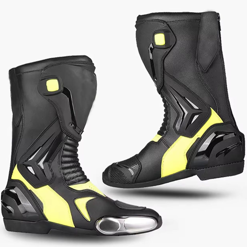 รองเท้าบูทหนังแท้กันน้ำสำหรับแข่งรถมอเตอร์ไซค์ ป้องกันนิ้วเท้าด้วยเหล็ก เหมาะสำหรับขี่มอเตอร์ไซค์และแข่งรถ