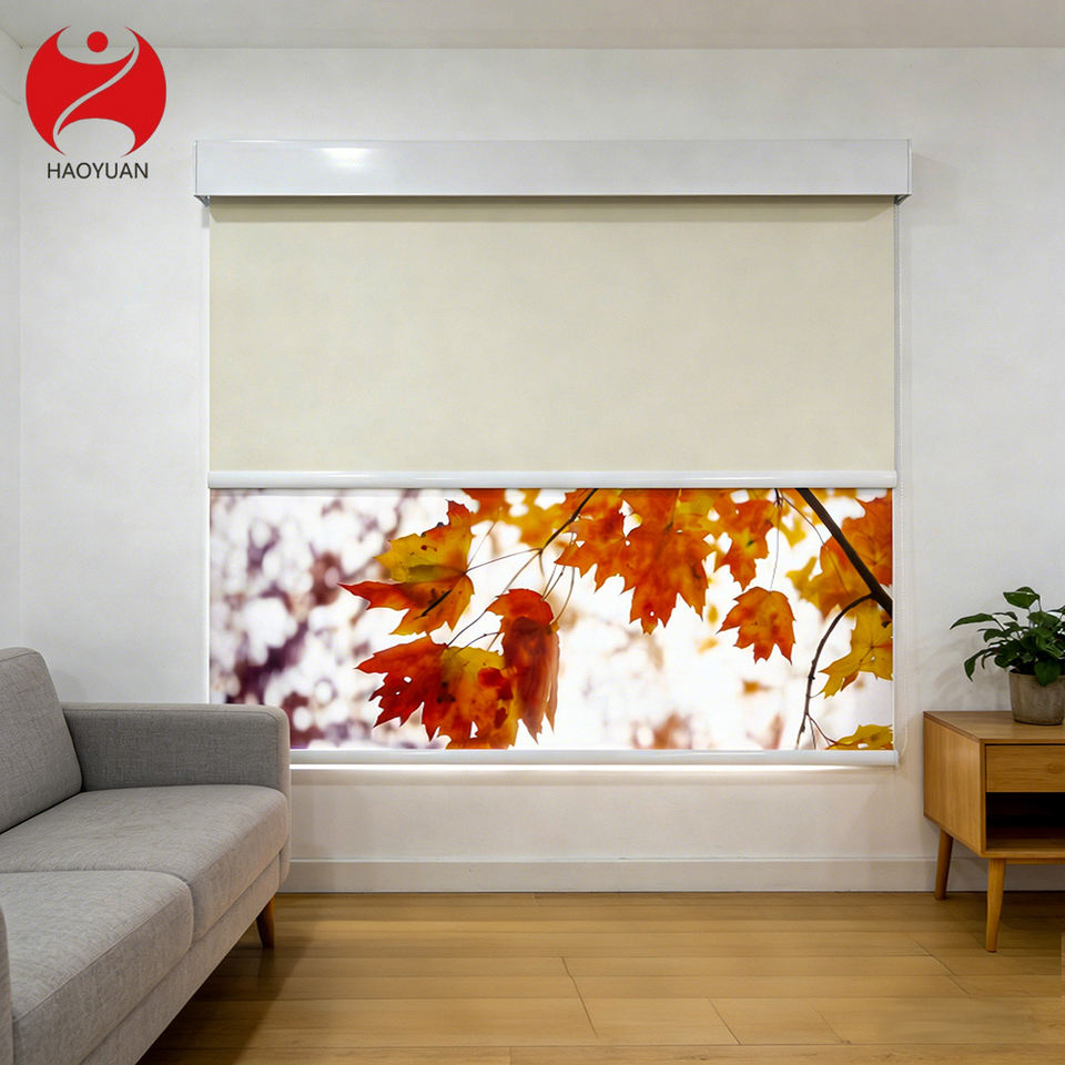 ม่านม้วนแบบมอเตอร์สองชั้น สำหรับกลางวันและกลางคืน สำหรับหน้าต่าง