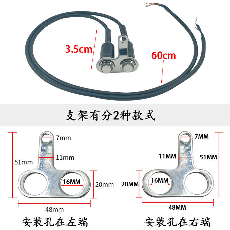 สวิตช์แฮนด์มอเตอร์ไซค์ Motorola ขนาด 16 มม. แบบ E-Type พร้อมไฟแบ็คไลท์สำหรับสตาร์ทและไฟฉุกเฉิน