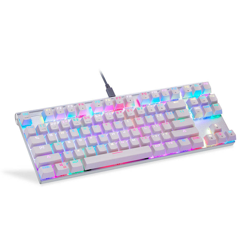 Motospeed คีย์บอร์ดเล่นเกมแบบมีสาย CK101,87ปุ่ม RGB Mechanical Keyboard สวิตช์สีฟ้าแดงสำหรับคอมพิวเตอร์