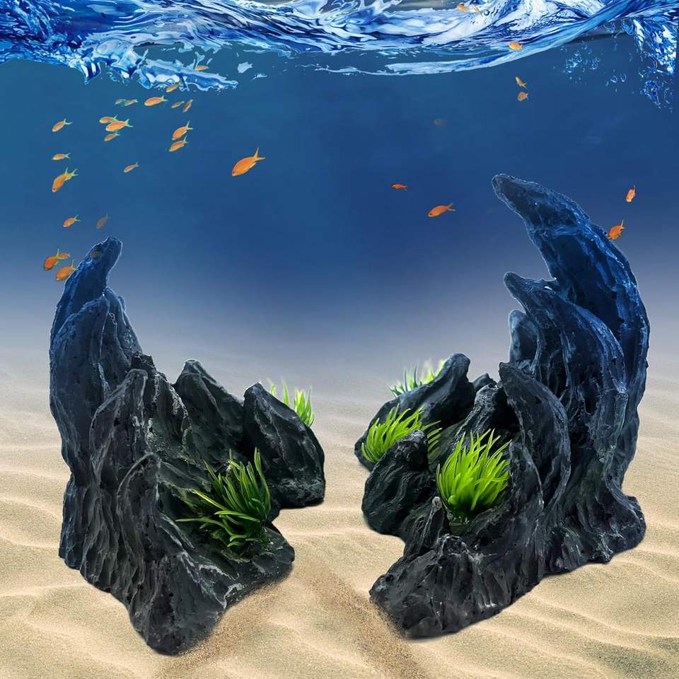 อุปกรณ์เสริมตู้ปลาเรซิ่น & เซรามิกสำหรับตกแต่งบนภูเขาถ้ำที่พักพิงสีเทาและดำขนาด S/L