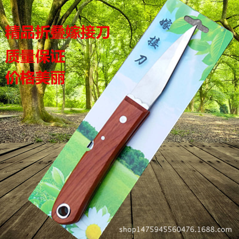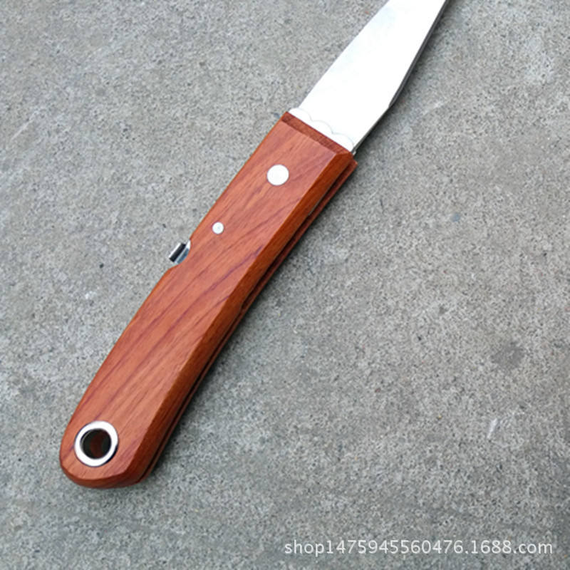 มีดตัดกิ่งพับได้ Mountain Wisteria ทำจากเหล็กคาร์บอนสูง ด้ามไม้ ใบมีดตรง สำหรับต้นกล้าไม้ผล