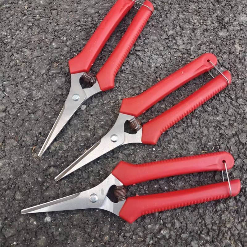 กรรไกรตัดแต่งกิ่งไม้พุ่มวิสทีเรีย ใบมีดสแตนเลส ปากตรง ด้ามจับสีแดง แบบบายพาส เครื่องมือทำสวน