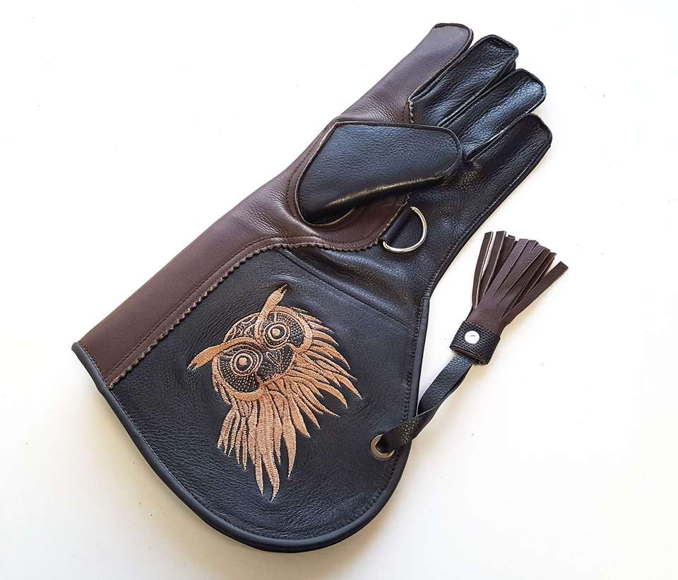ถุงมือเหยี่ยวสำหรับล่าสัตว์ทำจากหนังธรรมชาติมีโลโก้ปักลาย