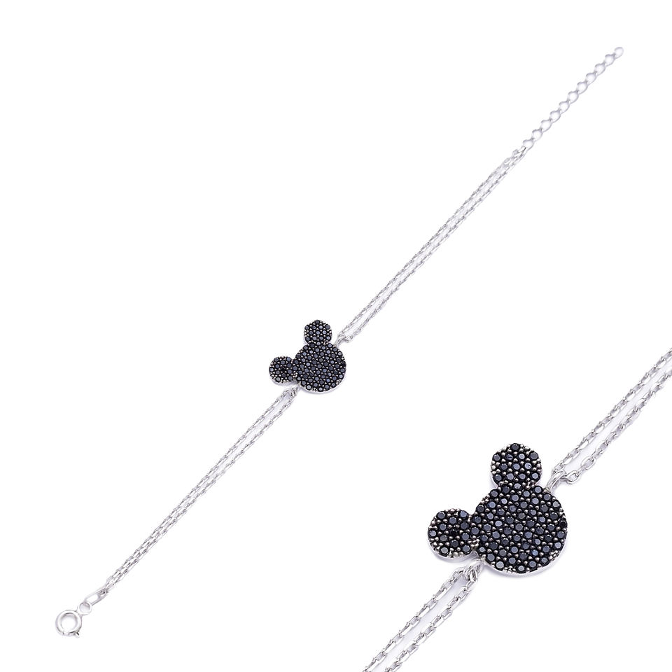 กำไลข้อมือหินสีดำดีไซน์รูปหนูทำด้วยมือแบบตุรกีสร้อยข้อมือนำโชค925เครื่องประดับเงินสเตอร์ลิง