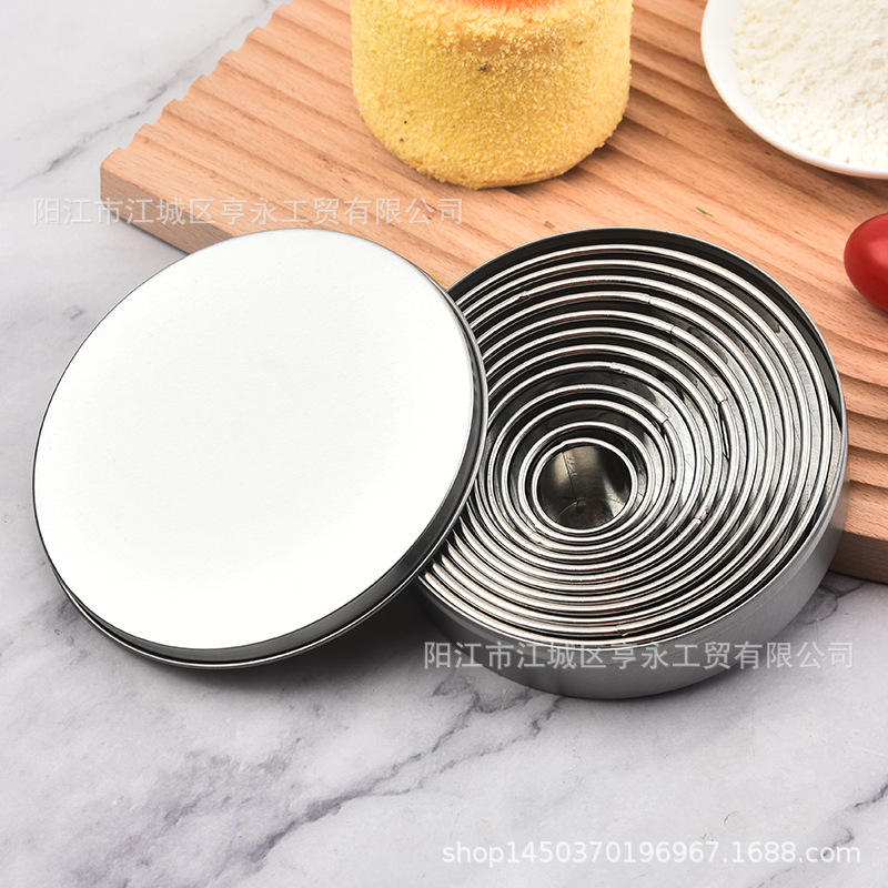 แม่พิมพ์เค้กสแตนเลสทรงกลม ชุด 12 ชิ้น สีเงิน อุปกรณ์ทำขนม เครื่องตัดคุกกี้