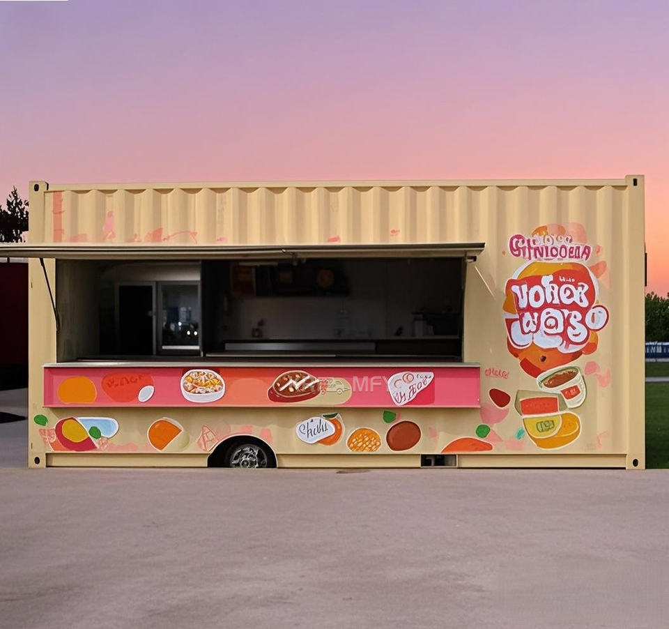 คีออสก์คอนเทนเนอร์สำเร็จรูปขนาด 20 ฟุต แบบเคลื่อนย้ายได้ สำหรับร้านกาแฟ ร้านอาหาร ครัว ใช้พื้นที่ได้อย่างมีประสิทธิภาพ