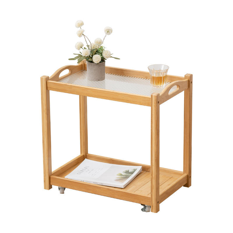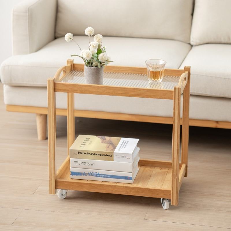 รถเข็นโต๊ะข้างอเนกประสงค์พร้อมตะกร้าเก็บของ วัสดุไม้ไผ่ ดีไซน์ทันสมัย ใช้งานได้หลากหลาย เหมาะสำหรับห้องนั่งเล่น สำนักงาน โต๊ะกาแฟ