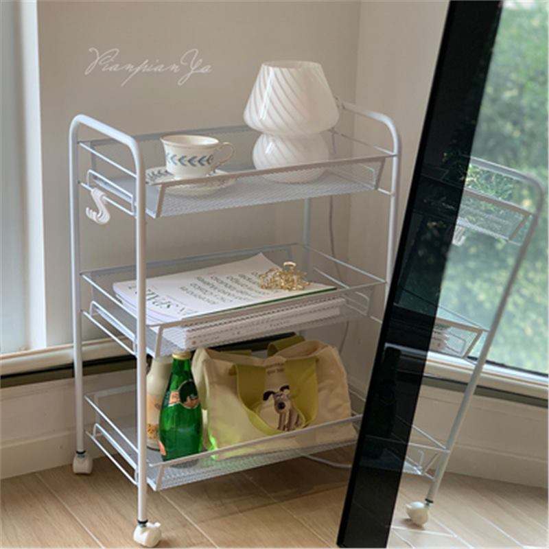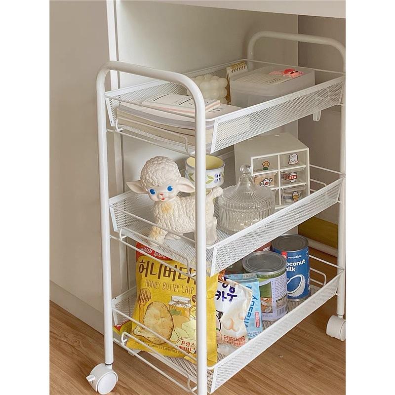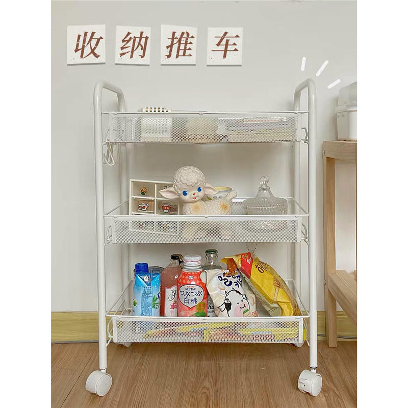รถเข็นเก็บของเคลื่อนที่ 3 ชั้น โครงเหล็กคาร์บอน พร้อมล้อ 4 ล้อ สำหรับใช้ในร้านเสริมสวย ห้องครัว ห้องนั่งเล่น