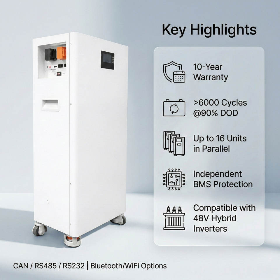 แบตเตอรี่รถเข็นเคลื่อนย้ายได้51.2V 10240Wh 200Ah สำหรับ16kwh สำรองที่อยู่อาศัยแบตเตอรี่เก็บพลังงานลิเธียมที่บ้าน