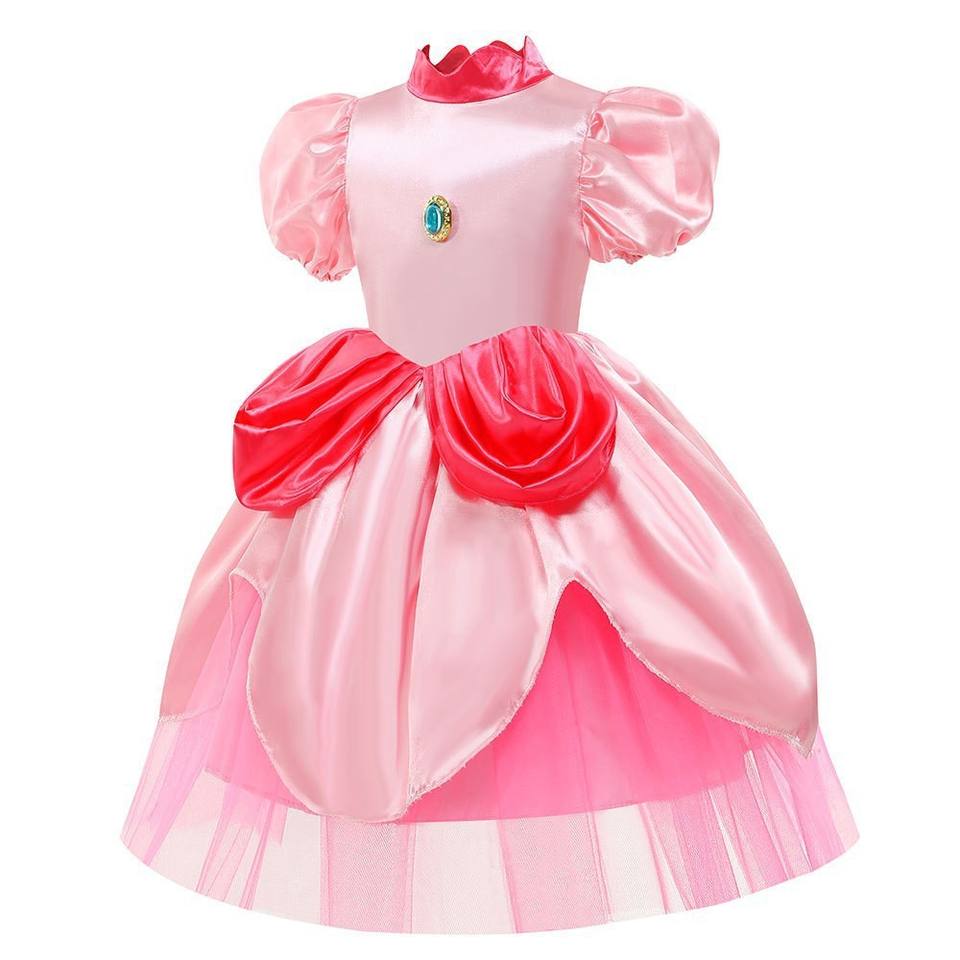 ชุดฮาโลวีนสำหรับเด็กชุดเกมมาริโอซูเปอร์แมรี่ภาพยนตร์คริสมาสต์สีชมพูพีชเจ้าหญิงก้อย
