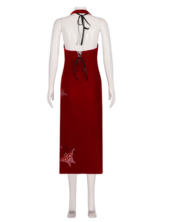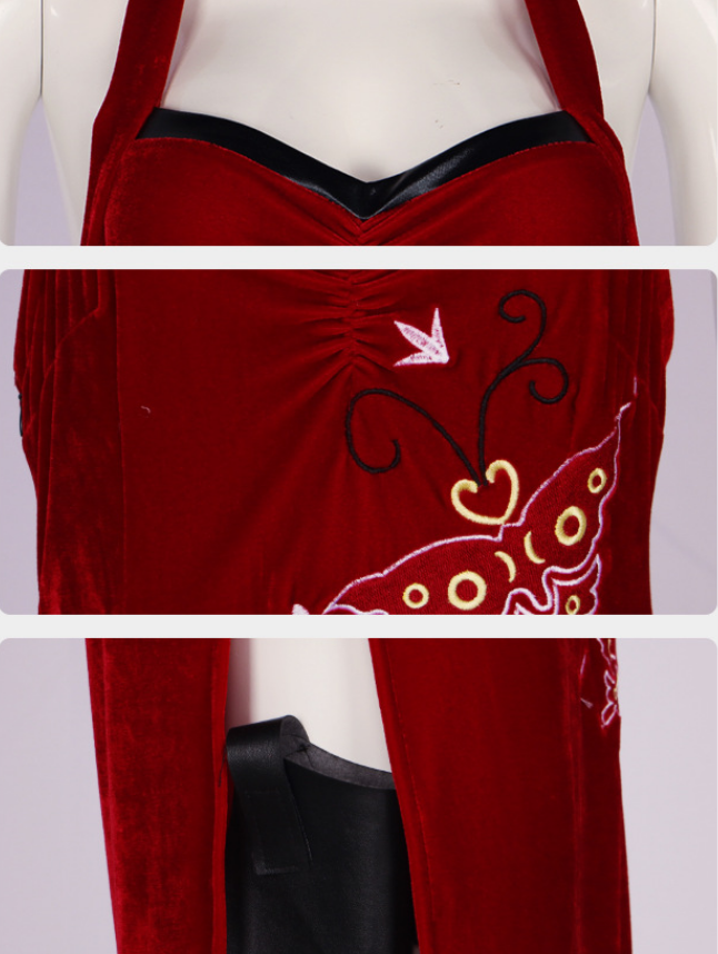 ชุดคอสเพลย์ยูนิฟอร์มชุดคอสเพลย์ลายคริสมาสต์ชุดกี่เพ้าสีแดงลายลูกไม้สำหรับวันฮาโลวีน