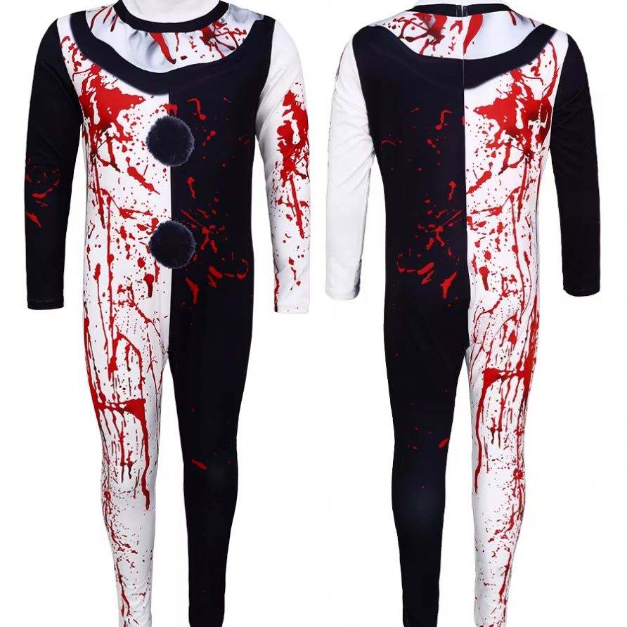 ชุดคอสเพลย์ตัวตลกสำหรับผู้ใหญ่ผู้หญิง, ชุดบอดี้สูทจัมพ์สูทคราบเลือดชุดเสื้อผ้าฮาโลวีน