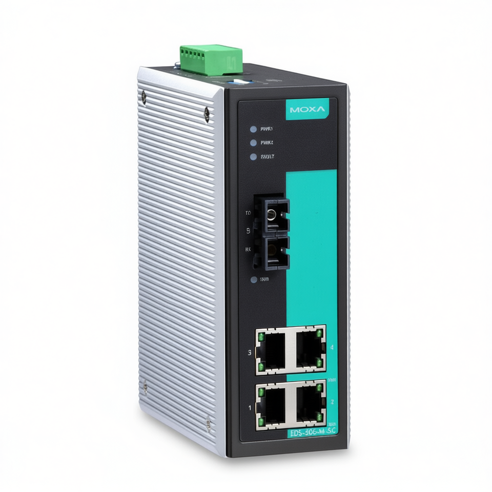 Moxa EDS-305-M-SC-T สวิตช์อุตสาหกรรมแบบไม่ต้องมีการจัดการ 4 พอร์ต สำหรับติดตั้งบนราง DIN