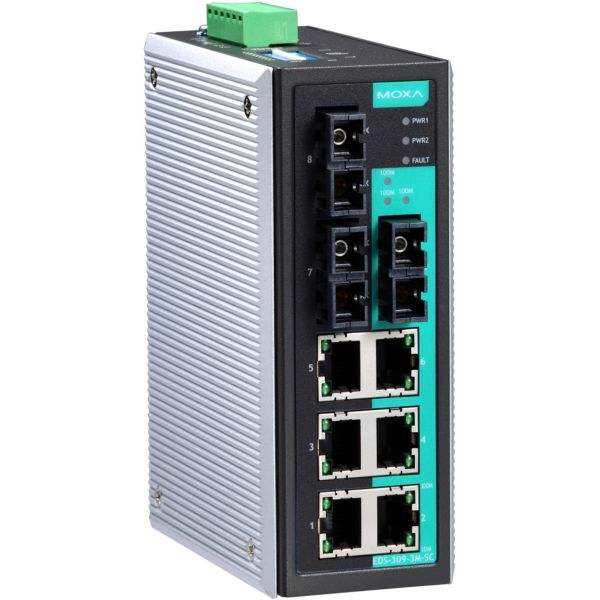 Moxa สวิตช์อีเธอร์เน็ต8พอร์ตแบบไม่มีการจัดการรางดิน EDS-309-3M-SC 24V iee 802.3