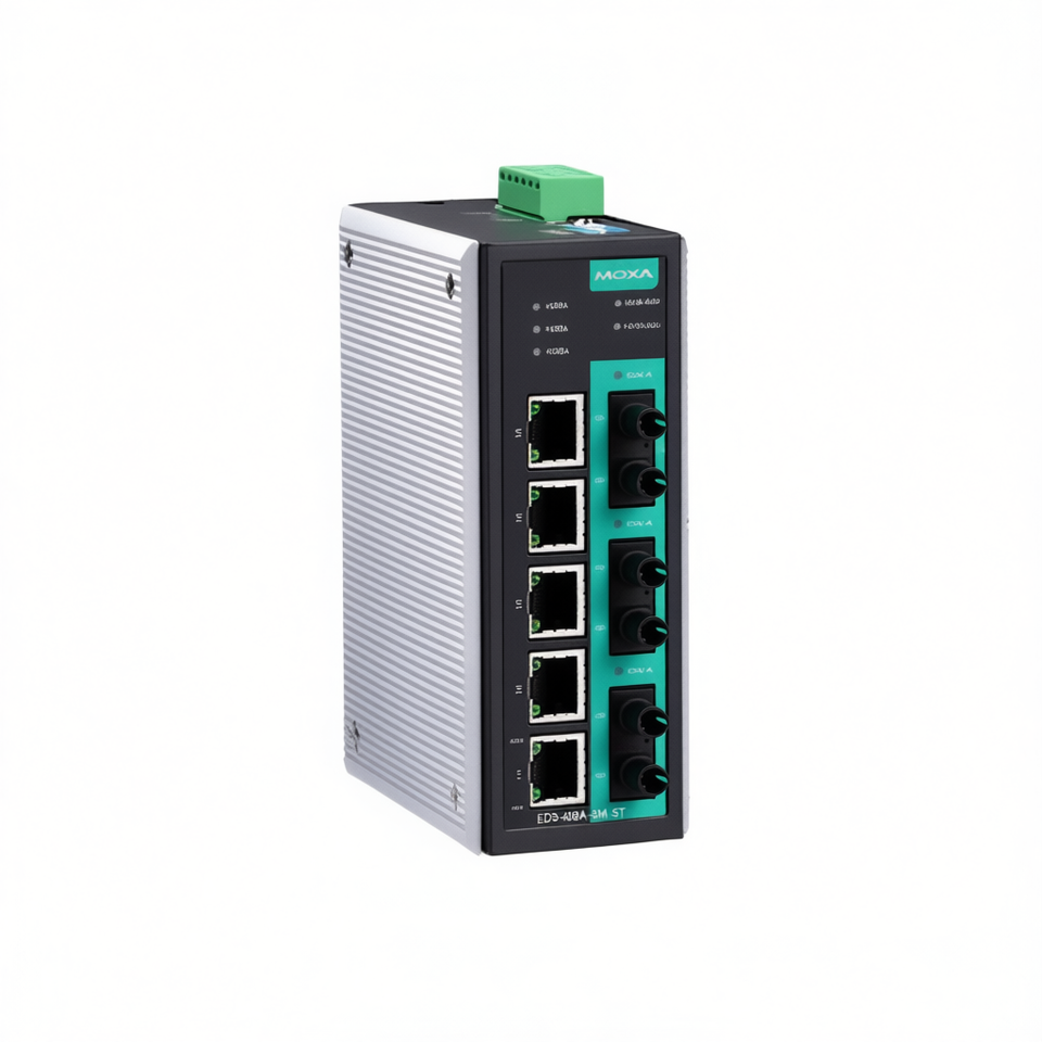 สวิตช์ Moxa EDS-408A-3M-ST แบบจัดการได้ 8 พอร์ต สำหรับติดตั้งบนราง DIN สำหรับอุตสาหกรรม ใช้ในระดับองค์กร