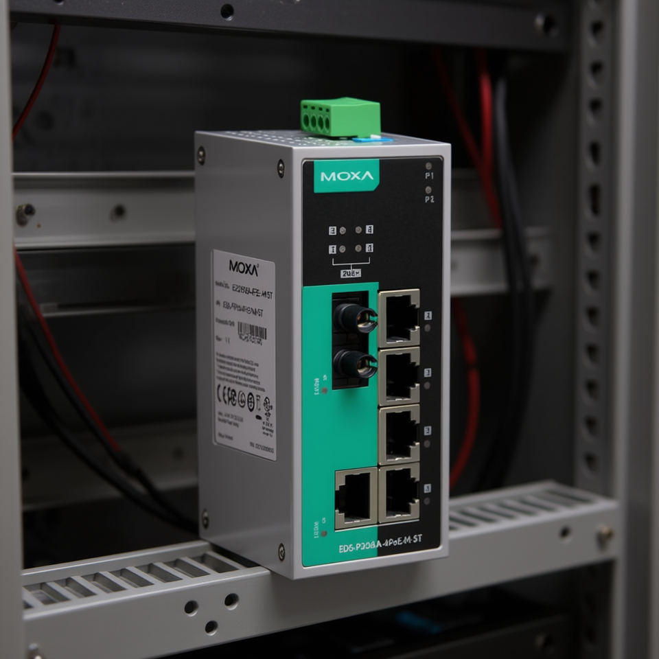 สวิตช์ Moxa EDS-P206A-4PoE-M-ST แบบ 4 พอร์ต PoE ไม่ต้องจัดการ ติดตั้งบนราง DIN สำหรับองค์กร