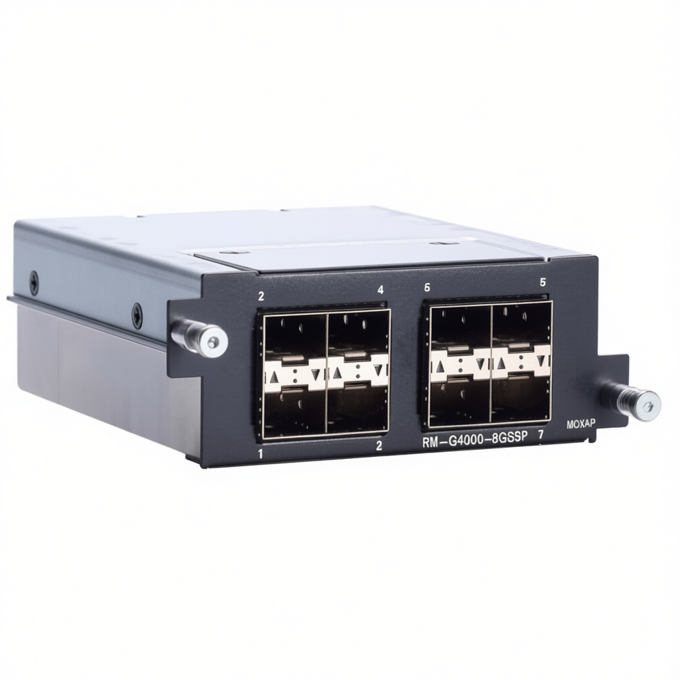 โมกซ่า RM-G4000-8GSFP สวิตช์อีเธอร์เน็ตแบบโมดูลาร์ 8 พอร์ต GbE SFP สำหรับเครือข่ายระดับองค์กร