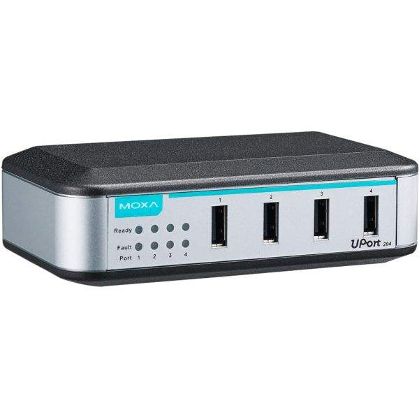 โมซ่า ยูพอร์ต 204 อุปกรณ์เชื่อมต่อ USB อุตสาหกรรม 4 พอร์ต สำหรับรับข้อมูล พร้อมไฟแสดงสถานะ LED และตัวเรือนโลหะ