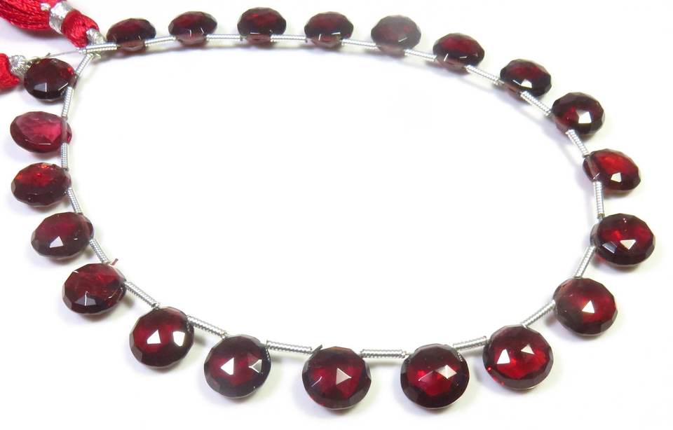 Mozambique ลูกปัดตัดเหรียญโกเมนธรรมชาติคุณภาพสูง8.5-9มม. อัญมณีเหลี่ยมเพชรพลอย8.5 "เส้นใยที่มาจากแอฟริกาขายส่งมาก