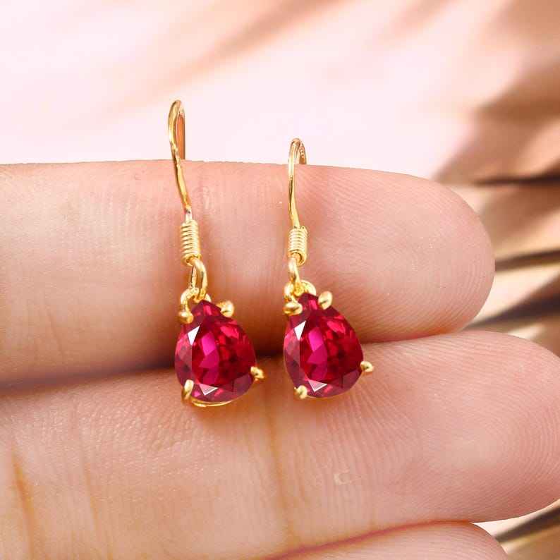 ต่างหูรูปทรงลูกแพร์สีแดงจากโมซัมบิก เงินแท้ 925 ชุบทอง 14K เครื่องประดับหรูหราแบบห้อยระย้าสำหรับผู้หญิง ของขวัญสำหรับงานปาร์ตี้