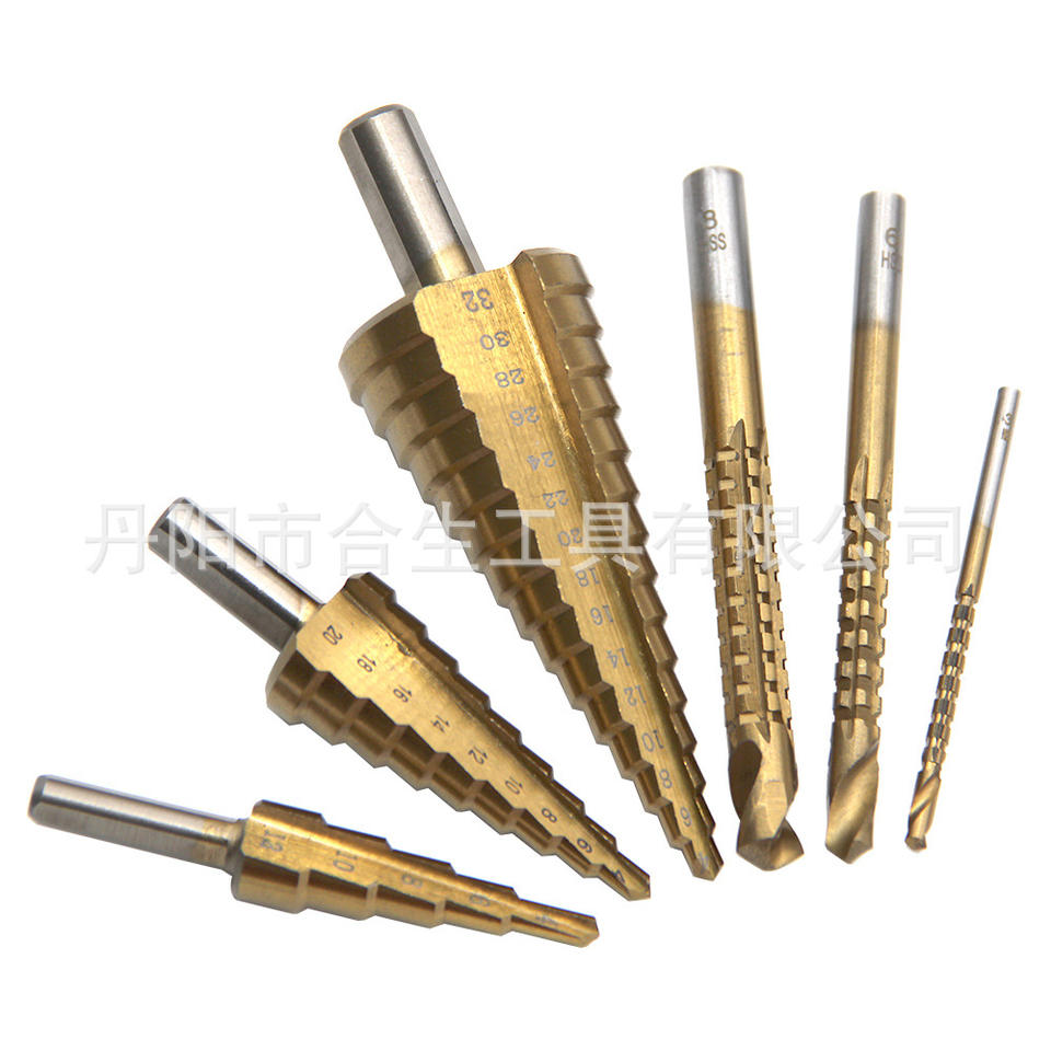 ดอกสว่านขั้นบันได 3 ชิ้น, ดอกสว่านเลื่อย 3 ชิ้น, บรรจุในกล่องพลาสติกสีแดง [410 กรัม]