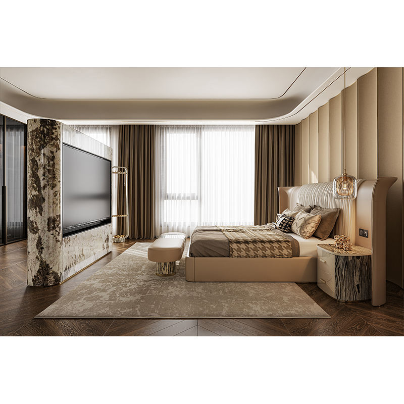 เตียงสไตล์อิตาลีดีไซน์เรียบง่ายหนังแท้นุ่มนวลสำหรับห้องนอนใหญ่เฟอร์นิเจอร์ห้องนั่งเล่นคู่